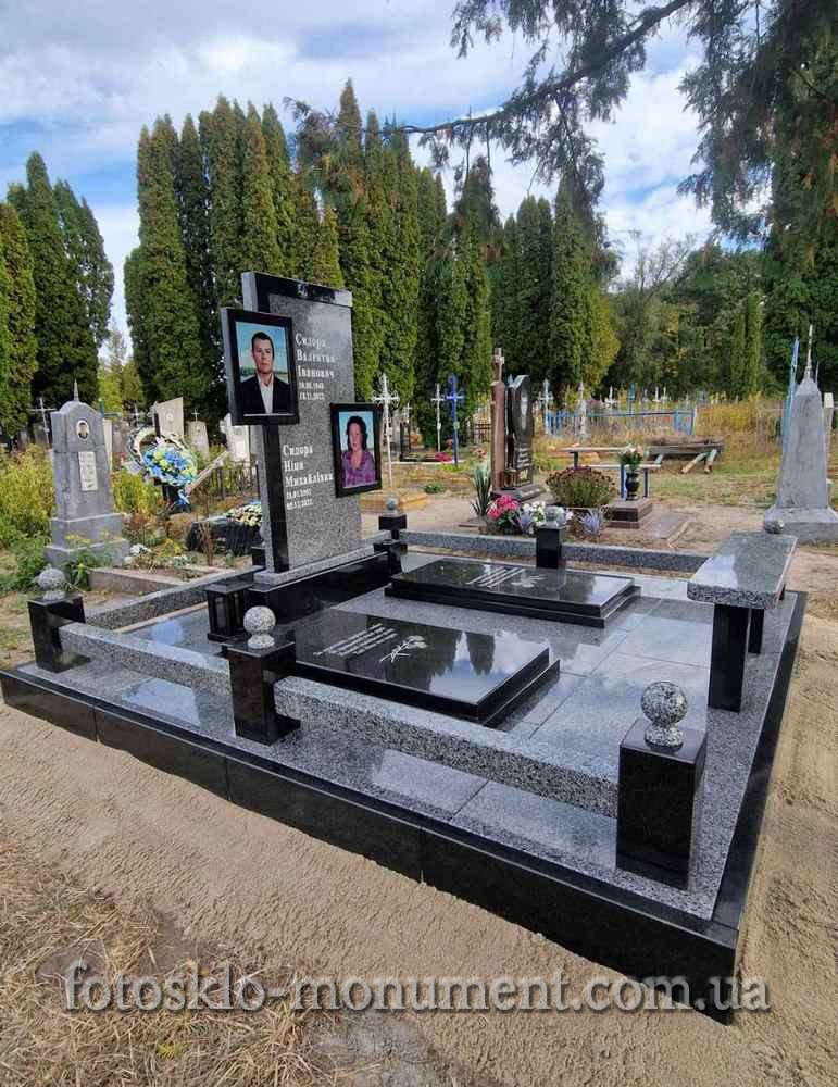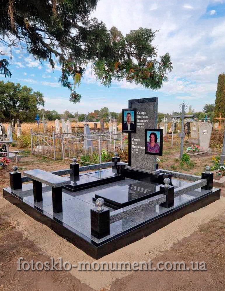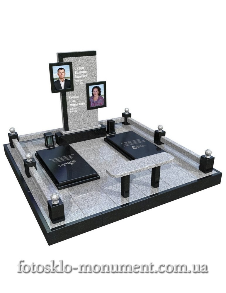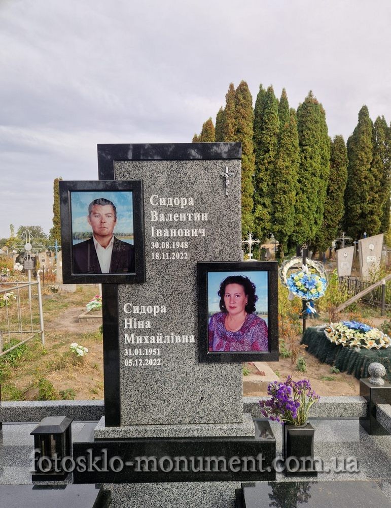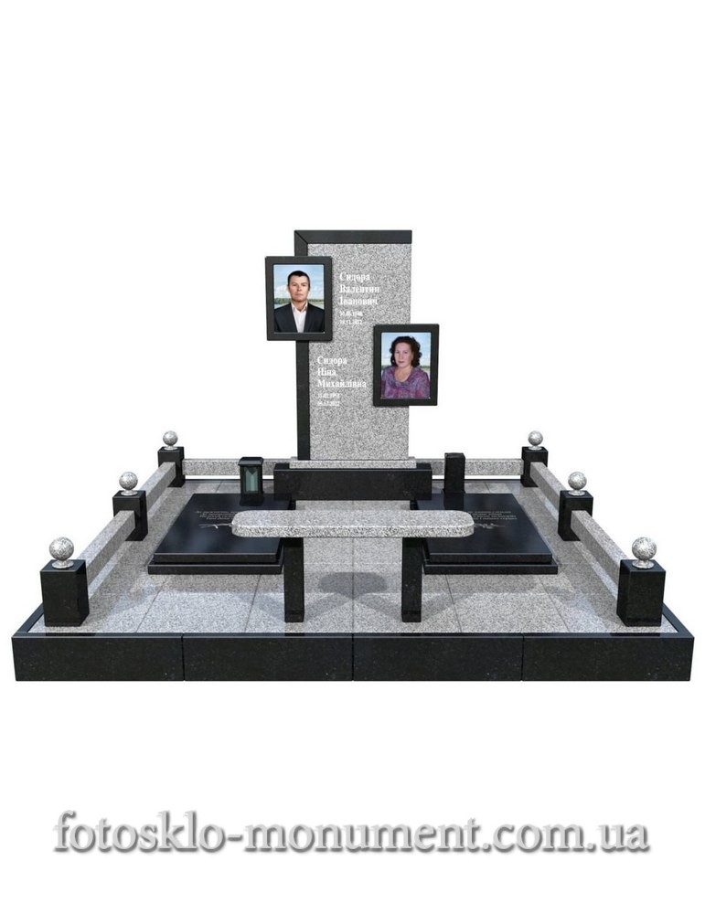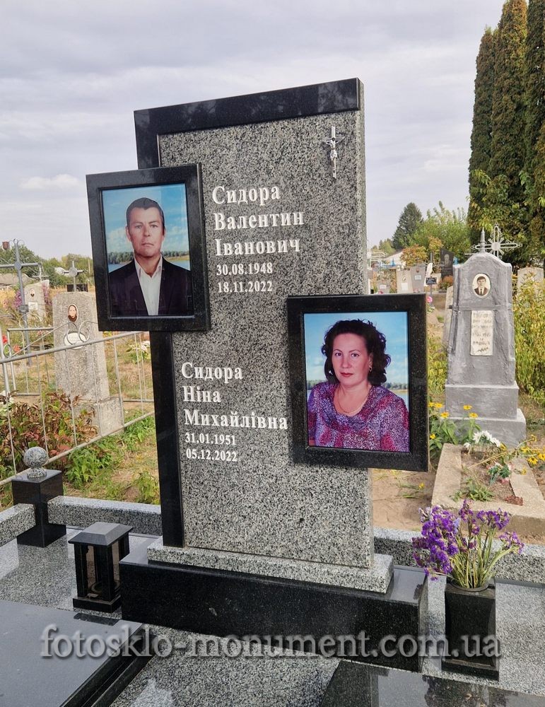 Двойной памятник из гранита с фотостеклом