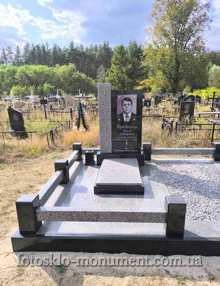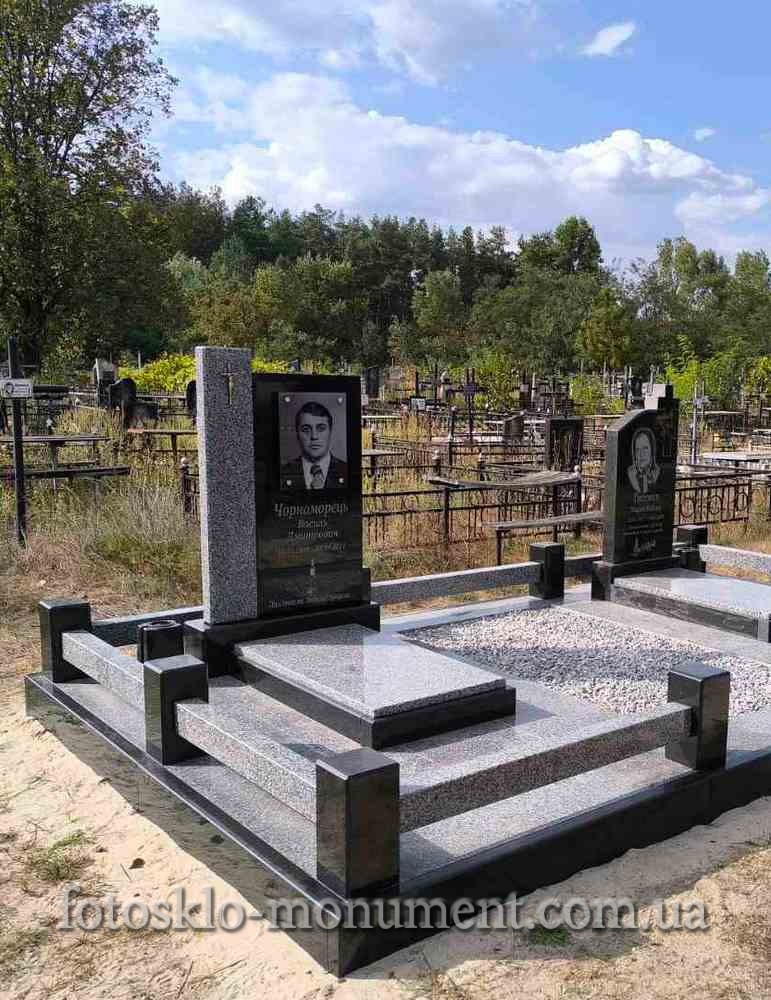 Памятник из серого и черного гранита с фото в стекле