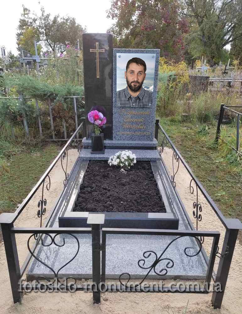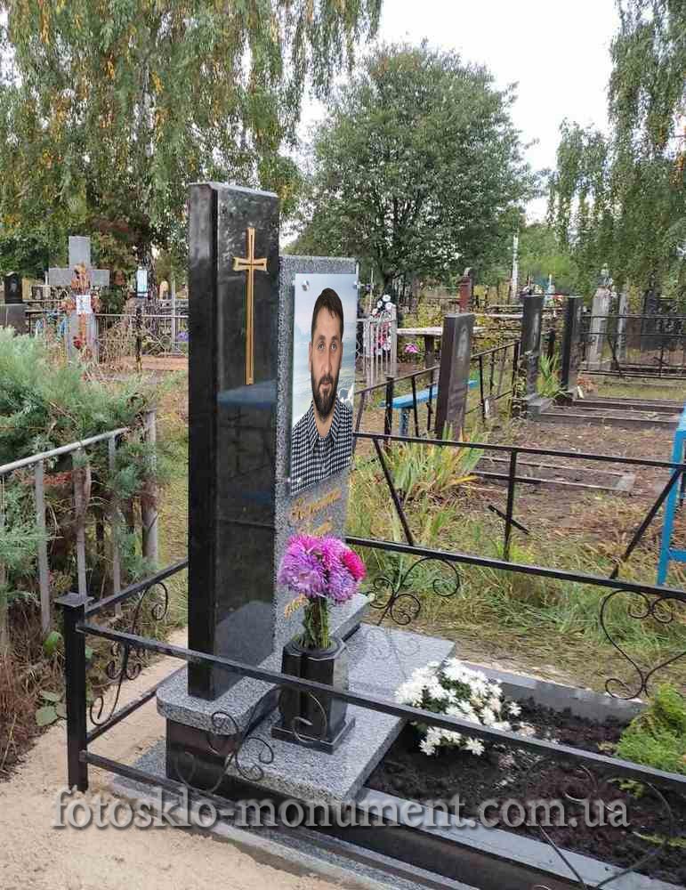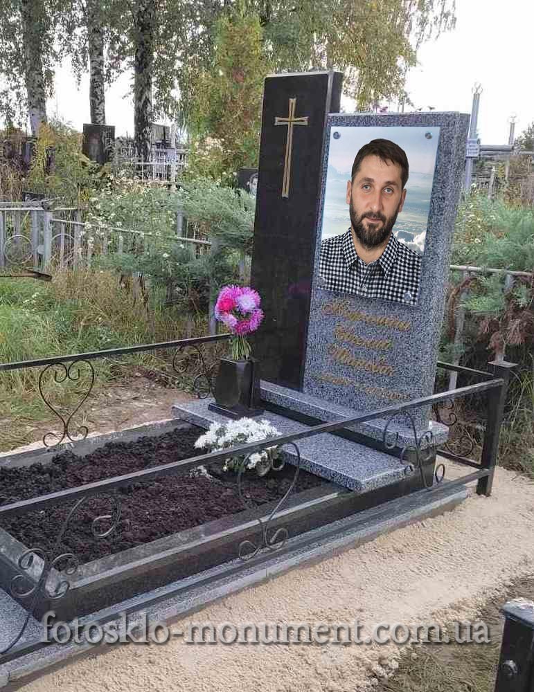 Памятник изготовлен из черного и серого гранита. Портрет овальной формы в стекле (под стеклом) по те..