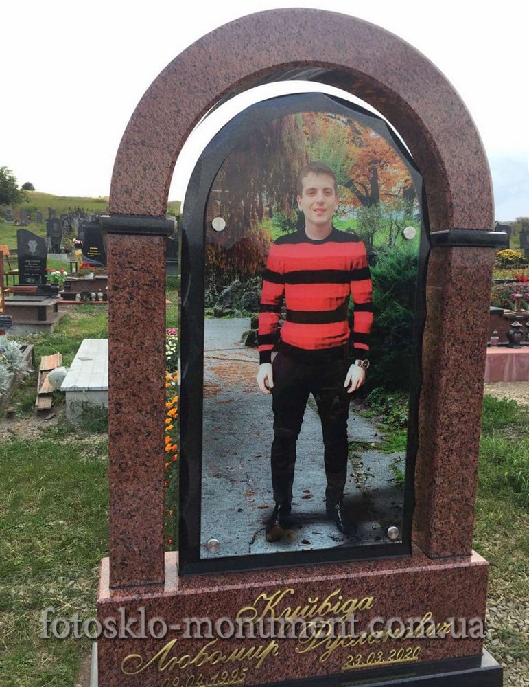Памятник в форме арки с фото в стекле