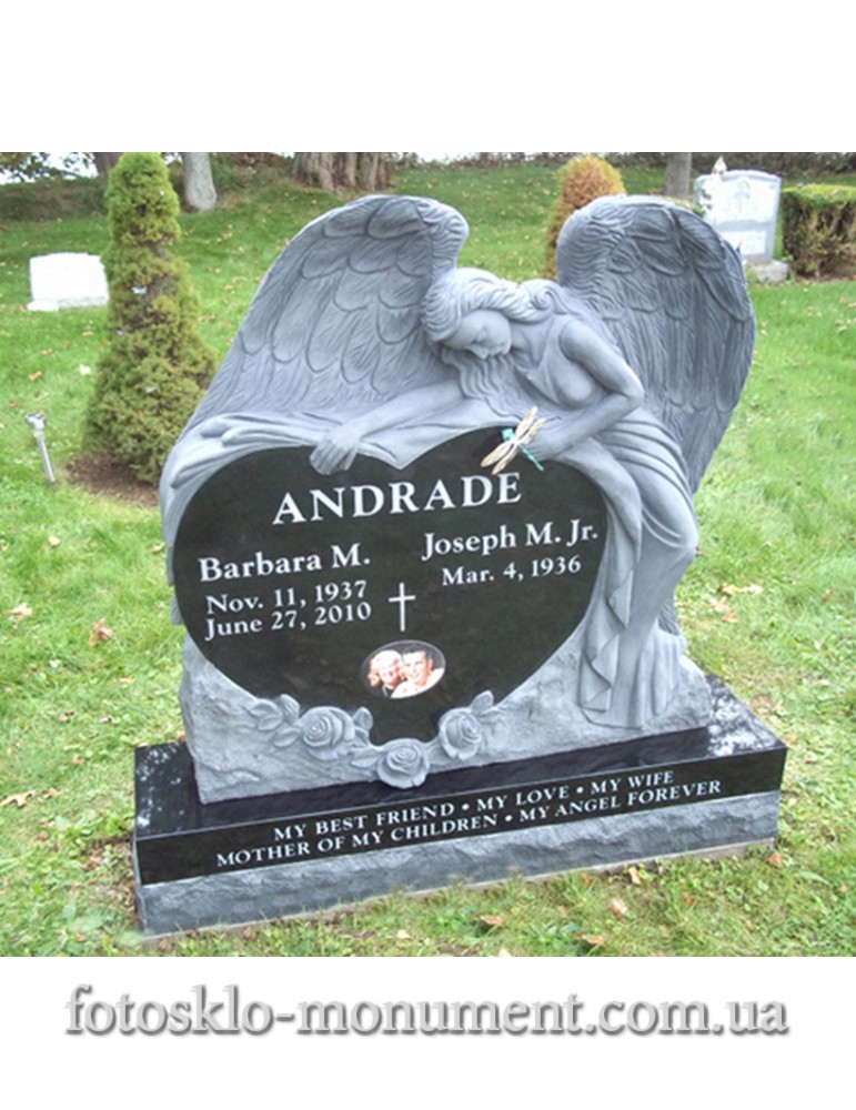 В данном товаре семейный памятник, для двоих изготовлен из гранита с использованием высечения дерева..