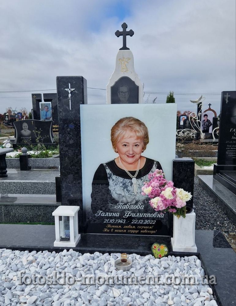 В центре композиции – фотостекло, позволяющее сохранить изображение на долгие годы. Благодаря технологии FOTOSKLO изображение не выгорает, не боится влаги или мороза.