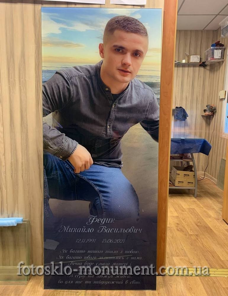 Фото у склі прямокутне для пам'ятника, різні розміри та форми. Замовляйте лише оригінал. Гарантія 25 років. Доставка по всій Україні.
