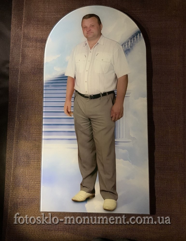 Фото у склі двостороннє для пам'ятника, різні розміри та форми. Замовляйте лише оригінал. Гарантія 25 років. Доставка по всій Україні.