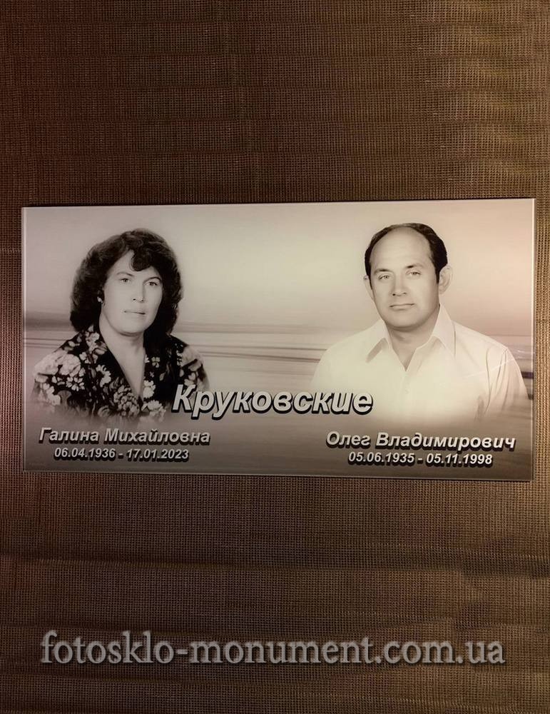 Фото на склі для пам'ятника, різні розміри та форми. Фотографія під склом може бути кольорова або чорнобіла. Наші дизайнери зроблять фоторетуш фоторафіі. Виготовлення по затвердженому вами макету. Фотоскло можна кріпити трьома варіантами. При замовлені пам'тника або вже на існуючий пам'ятник. Кріплення в нішу. Це заглиблення в плиті.
