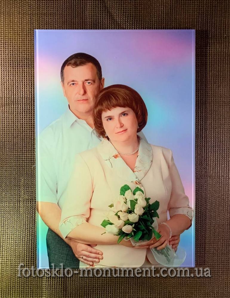 Фото на склі для пам'ятника, різні розміри та форми. Фотографія під склом може бути кольоровою або чорнобілою. Наші дизайнери зроблять фоторетуші фоторафії. Виготовлення за затвердженим вами макетом. Фотоскло можна кріпити трьома варіантами. При замовленні пам'ятника або вже на існуючій пам'ятці. Замовляйте лише оригінал. Гарантія 25 років. Доставка по всій Україні.