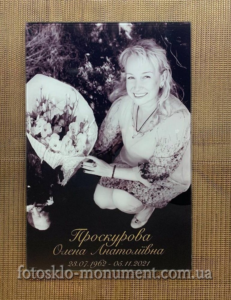 Фото на склі для пам'ятника, різні розміри та форми. Фотографія під склом може бути кольоровою або чорно-білою. Наші дизайнери зроблять фоторетуш фоторафії. Виготовлення за затвердженим вами макетом. Фотоскло можна кріпити трьома варіантами. При замовленні пам'ятника або вже на існуючій пам'ятник. Замовляйте лише оригінал. Гарантія 25 років. Доставка по всій Україні.