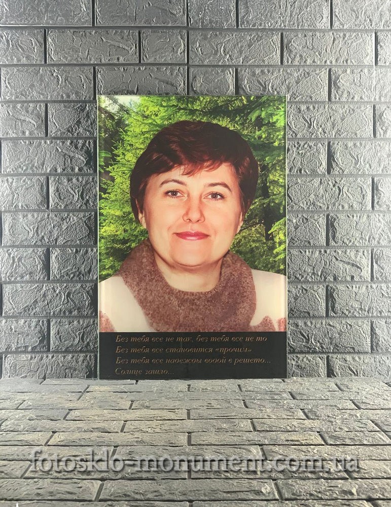 Фотографія під склом може бути кольоровою або чорно-білою. Наші дизайнери зроблять фоторетуші фотографії. Виготовлення за затвердженим вами макетом. Фотоскло можна кріпити трьома варіантами. При замовленні пам'ятника або вже на існуючій пам'ятник. Замовляйте лише оригінал. Стережіться підробок! Гарантія 25 років. Доставка по всій Україні.