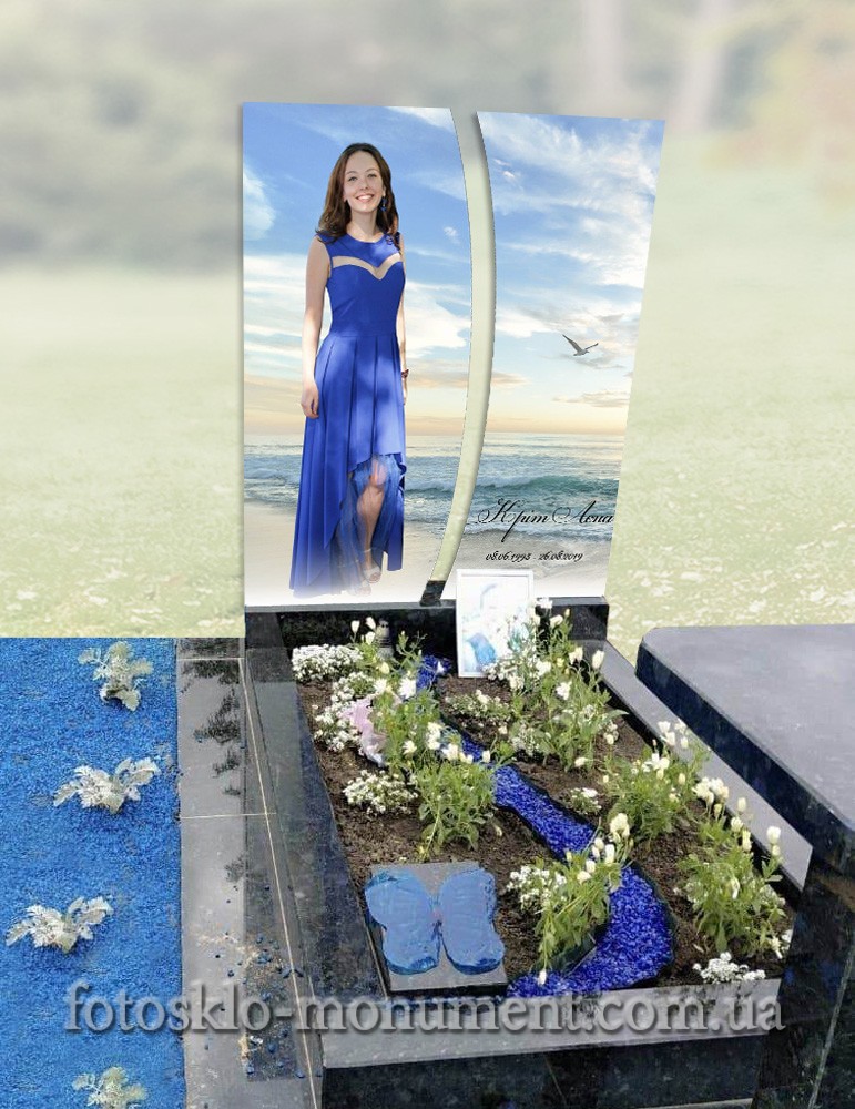 Цей пам'ятник одночасно легкий та символічний. При цьому скляне серце з портретом та написами робить..