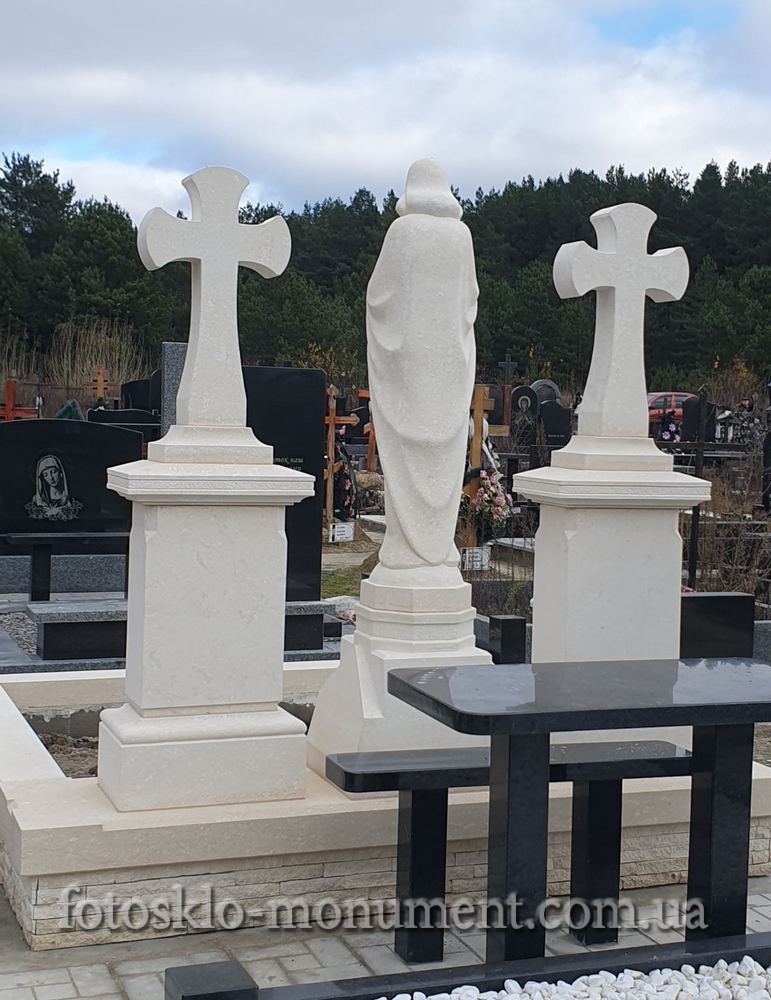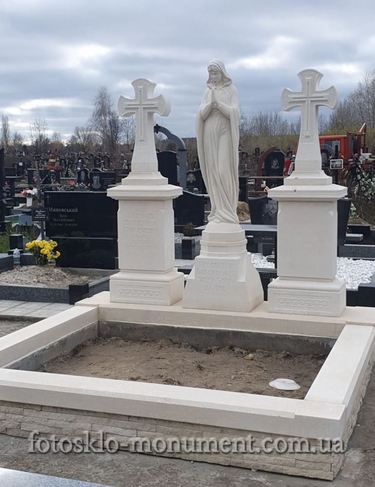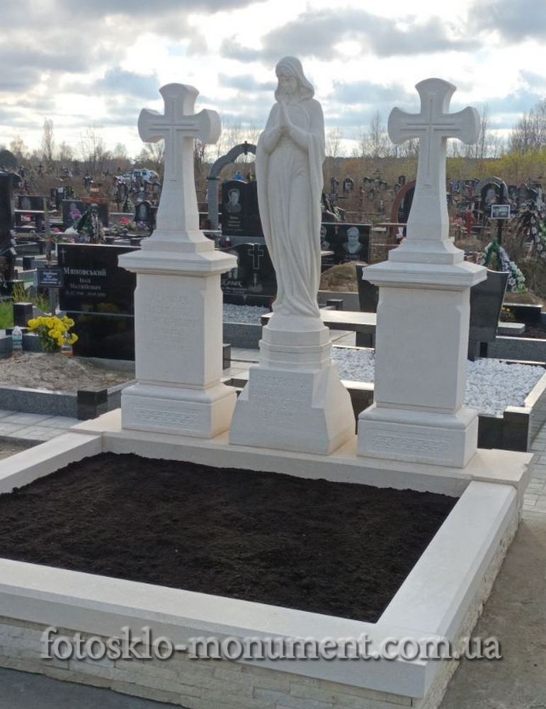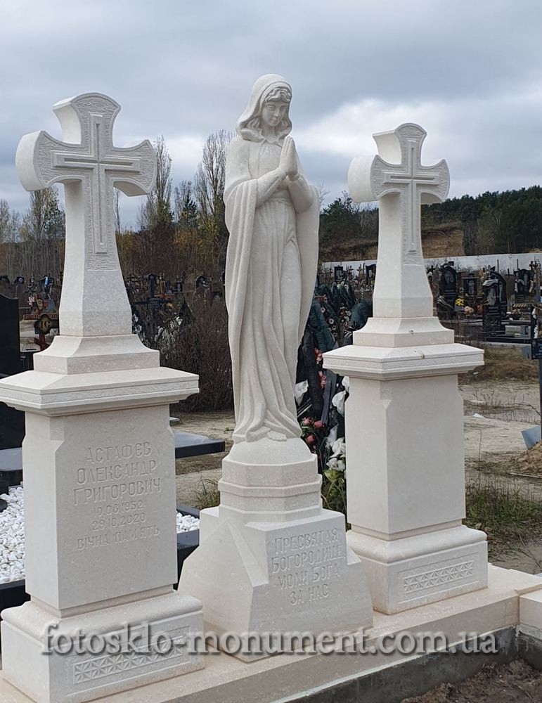 Пам'ятник із білого каменю з Дівою Марією