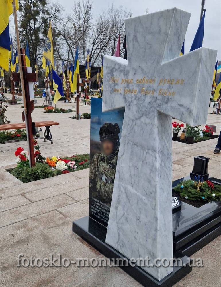 Пам'ятник Козацький Хрест з фотосклом, військовому ЗСУ