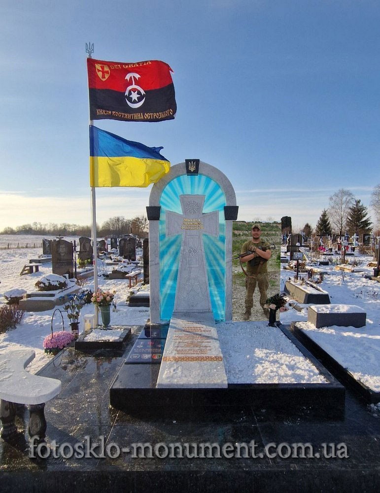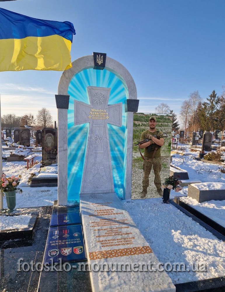 Пам'ятник з хрестом та фотосклом, військовому ЗСУ