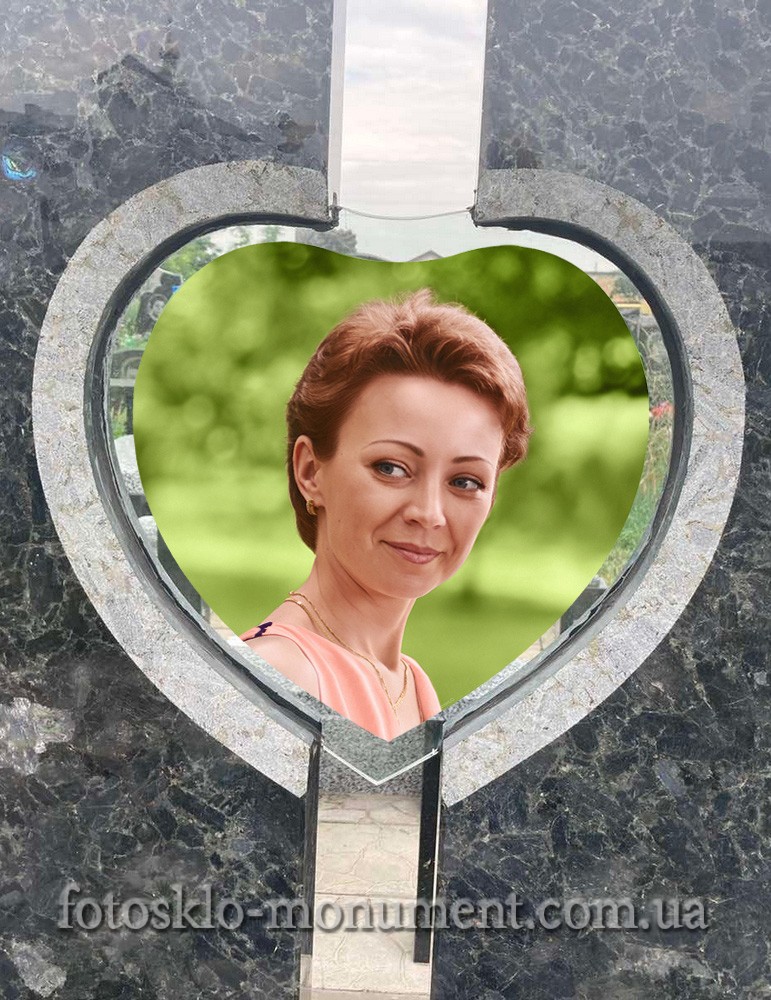 Одинарний гранітний пам’ятник із фотосклом у формі серця.