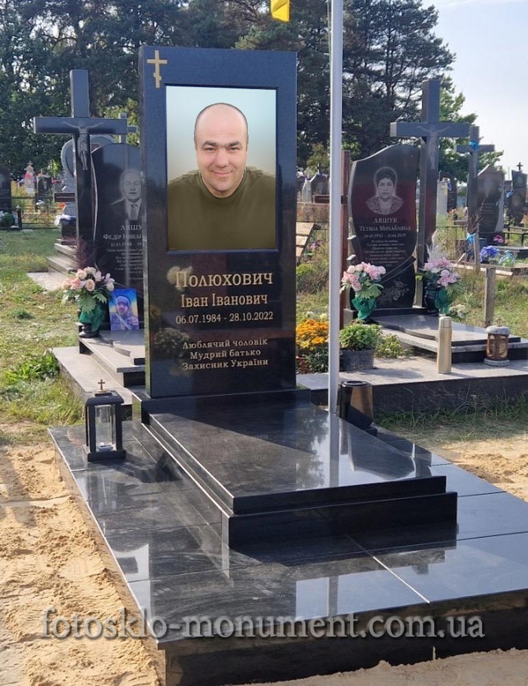 Пам'ятник з хрестом та фотосклом, військовому ЗСУ