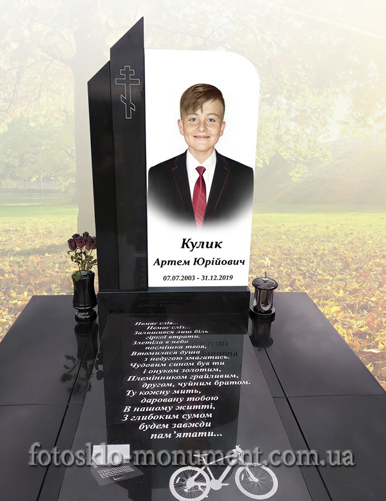 Пам'ятник з чорного граніту і фото в склі