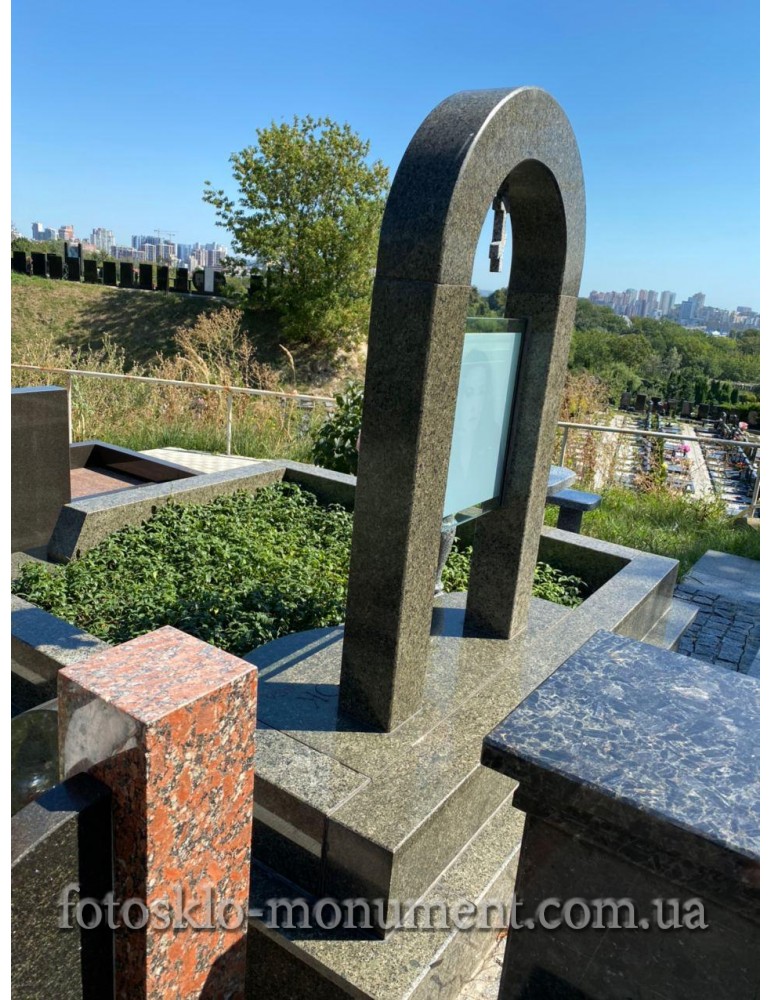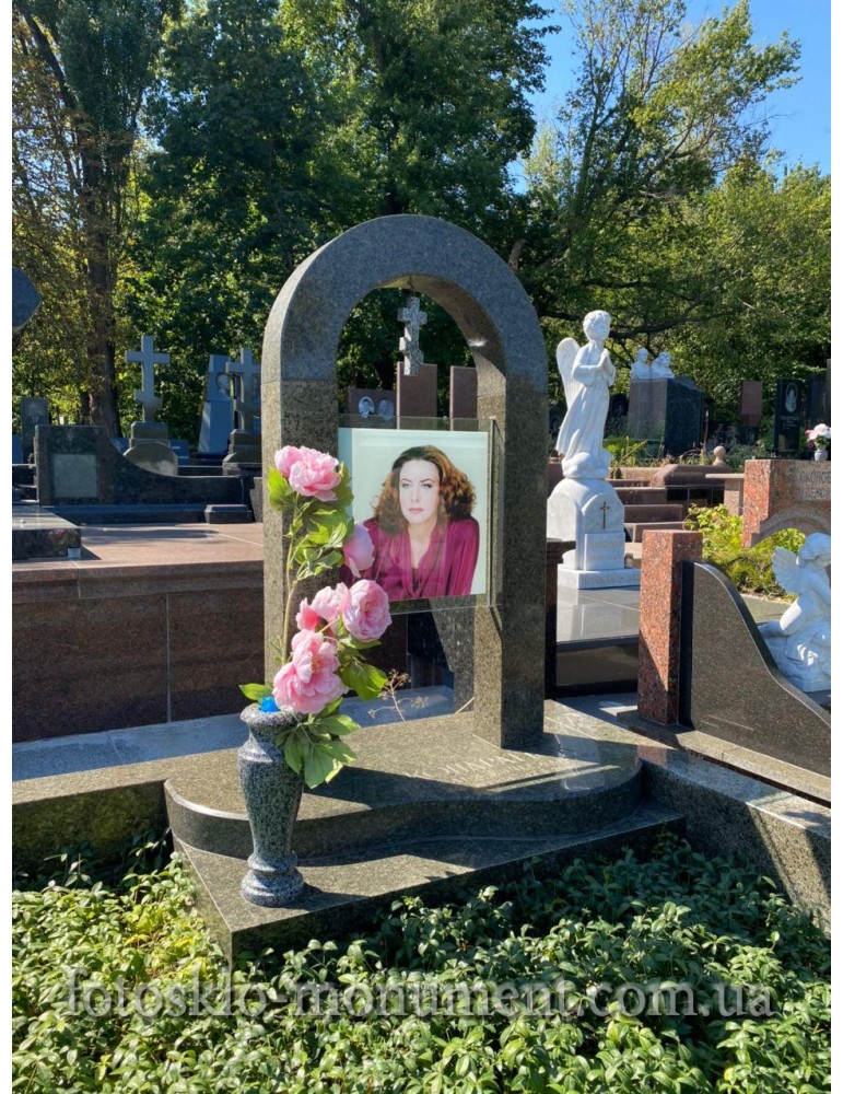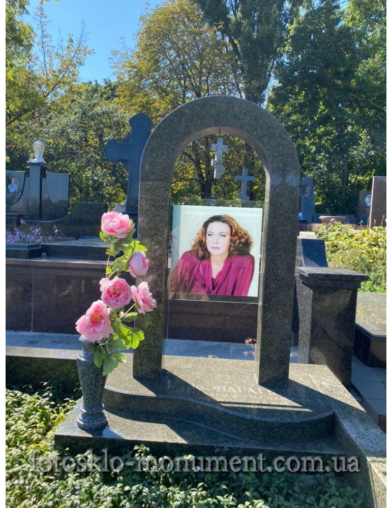 Пам'ятник із граніту з фотосклом дуже красиво і гідно виглядає у місці поховання. Відразу хочеться звернути увагу на те, як ніжно та тепло грають промені сонця на полірованій поверхні каменю – по-різному відбиваючись від деталей ритуального надгробка. Ступінчаста платформа з плавними лініями є основою для гравіювання написів з ім'ям і датами життя, але на ній також достатньо місця, щоб розмістити прощальні слова або художню епітафію. Ця пам'ятка може підійти як для дівчини або для мами, так і для чоловіка чи сімейного поховання. Не дивлячись на видиму масивність та надійність, він виглядає дуже легким та витонченим за рахунок повітряного простору навколо портрета з фото скла. Саме цей ключовий елемент в оформленні могили надає індивідуальних рис і робить атмосферу навколо особливої, наповненої світлими думками та любов'ю.