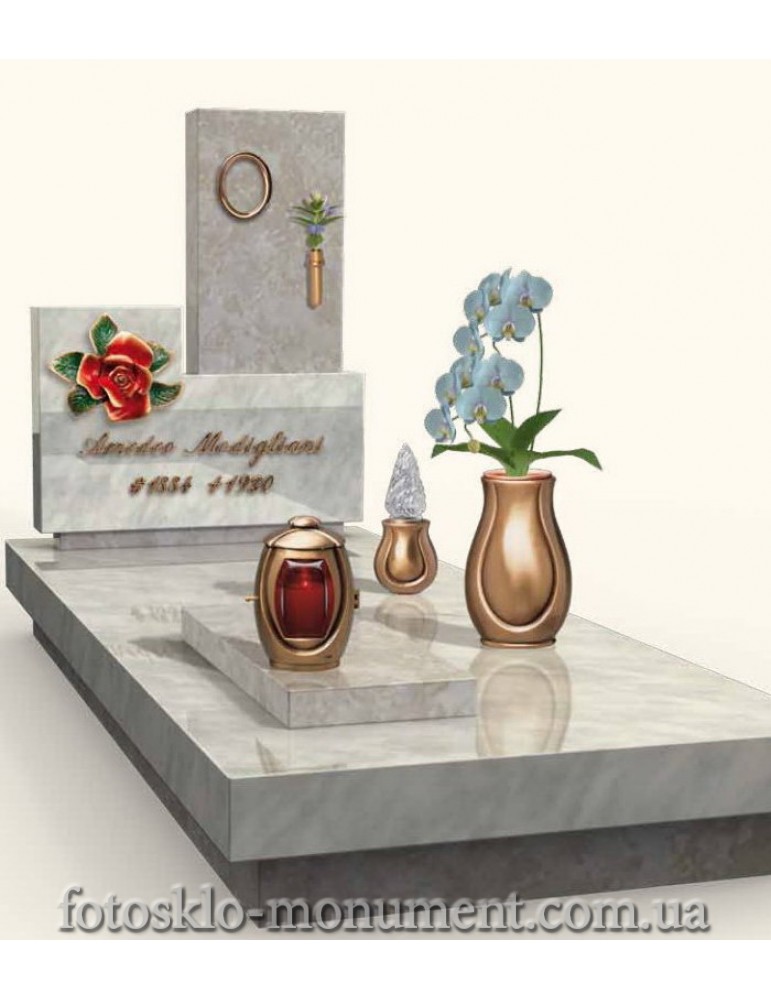 Бронзовые буквы, роза из бронзы, лампадка, рамка под фотокерамику и ваза комплектуются дополнительно из каталога Caggiati