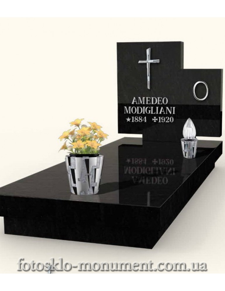 >Это скромный, лаконичный памятник, но в то же время он достойный и качественный. Такой памятник не привлекает излишнего внимания, но в то же время дорогие и качественные материалы говорят сами за себя. Он изготовлен из высококачественного букинского гранита, который великолепно дополняют элементы декора из благородной бронзы. На лицевой стороне памятника предусмотрена овальная бронзовая рамка под фотокерамику или фото на стекле, и крест, символизирующий воскресение. Наличие собственной гранитной мастерской позволяет нам выполнить по желанию клиента точно такой же памятник из итальянского мрамора. Возможна качественная установка памятников и своевременная доставка по всей Украине.
